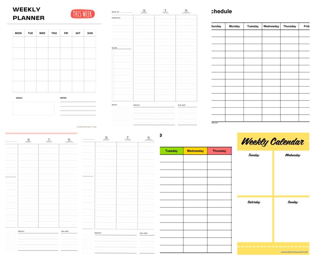 Template.net has a huge collection of free weekly schedules. Some require signing up with an email but most are just direct downloads. The quality varies a lot though so you gotta sort through them.