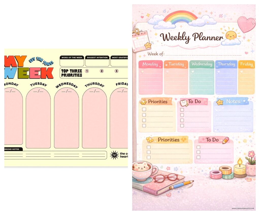Sit down and actually think about what you need to track. And I mean really need, not what looks cute. Are you tracking work projects? Meal planning? Kids’ activities? Because trying to cram everything into one weekly spread is how you end up with a planner that stresses you out instead of helping.