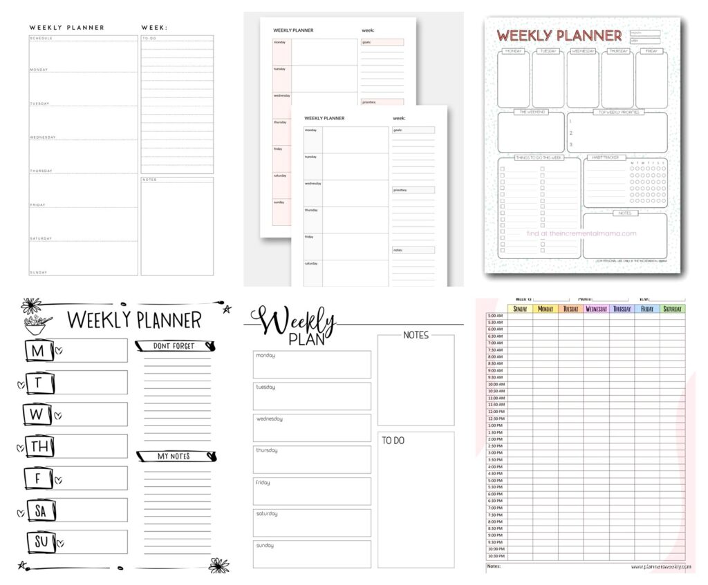 Canva has free weekly planner templates that you can customize and print. I use the minimalist ones because the cutesy ones with flowers and motivational quotes make me irrationally angry. You can change the colors, add your own headers, whatever.