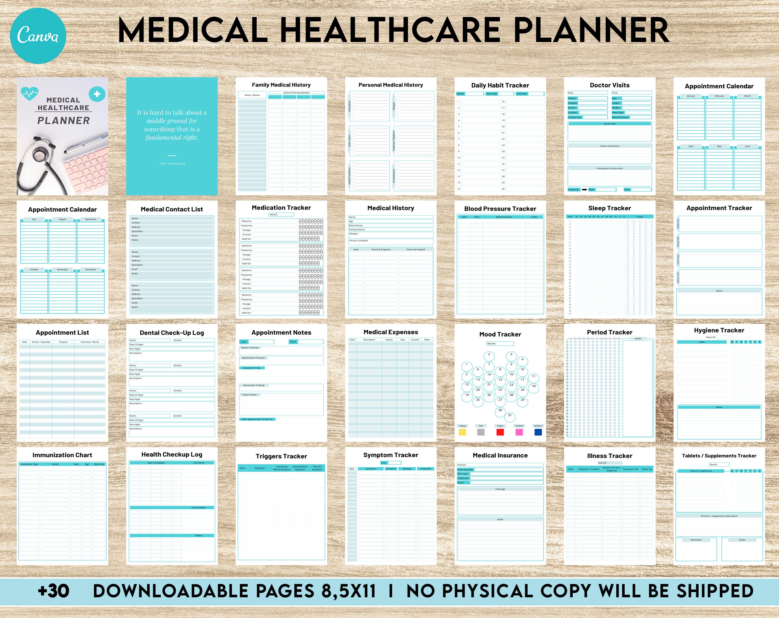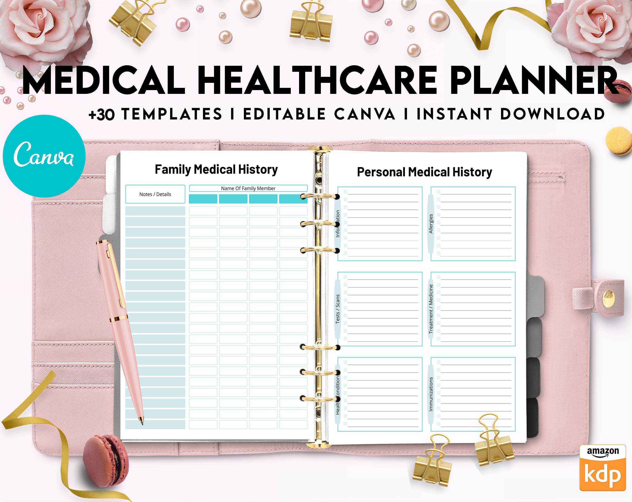 Discover our awesome Canva editable Medical Healthcare Planner Printable PDF File & Ready to Print.