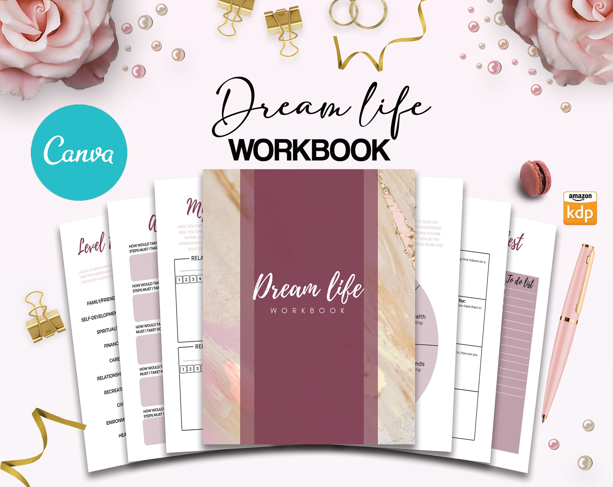 Dream Life Journal 8.5×11″, 60 Canva Editable Interior Templates, workbook, digital and printable